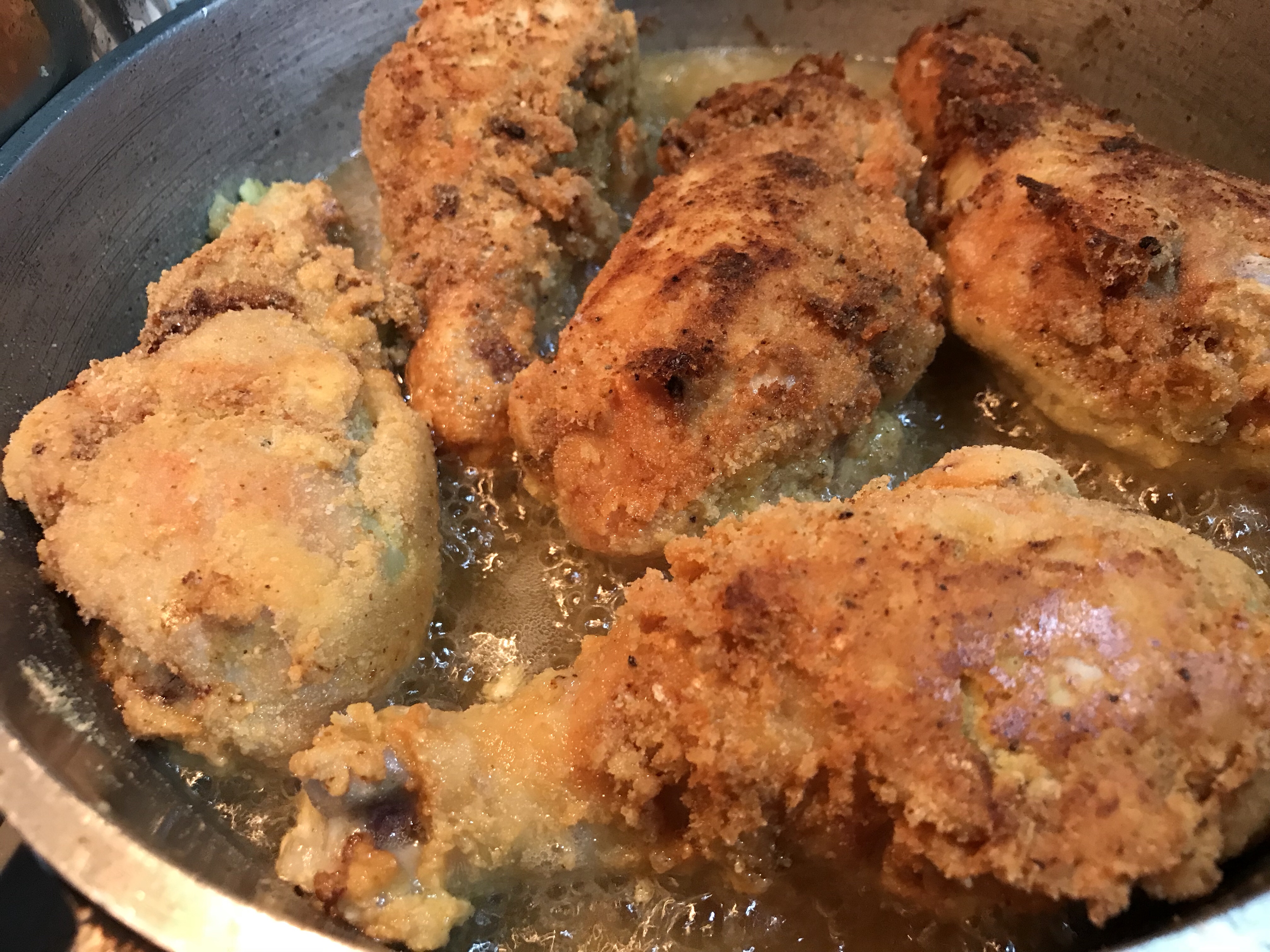 Recordando como mi mamá preparaba pollo frito, traté de hacerlo como lo hacía ella, después de sazonar, poner en tazón y combinar harina y huevo. En versión Keto no me funciono. Pero le buscamos la forma de hacerlo.