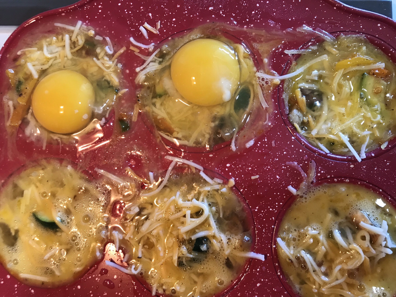Batimos 3 huevos y vertimos en nuestros moldes, cubriendo al final con un poco de queso.