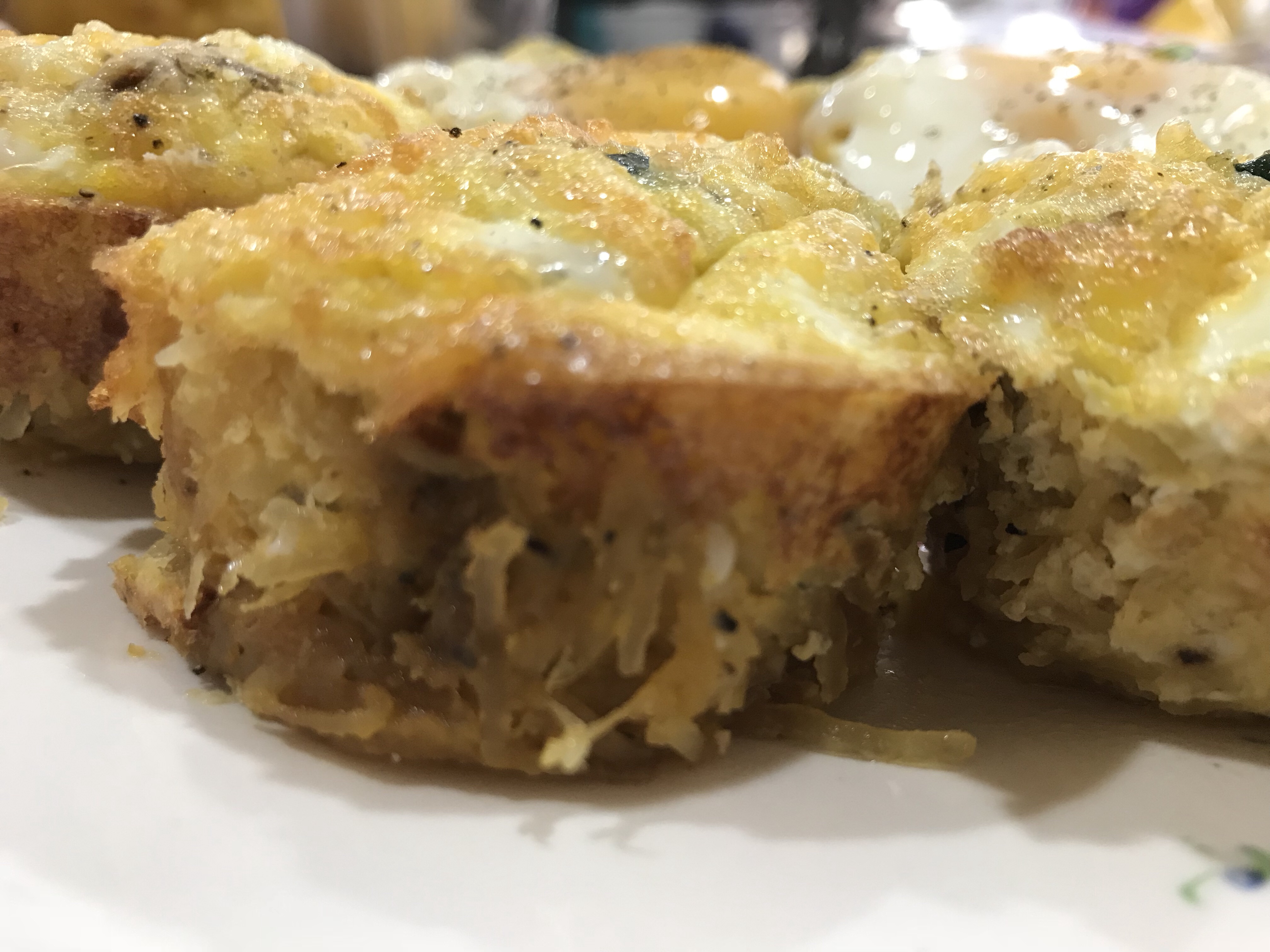 Preparamos una base de spagetti squash en nuestros moldes, previamente engrasados. Ponemos un poco de nuestro guisado.