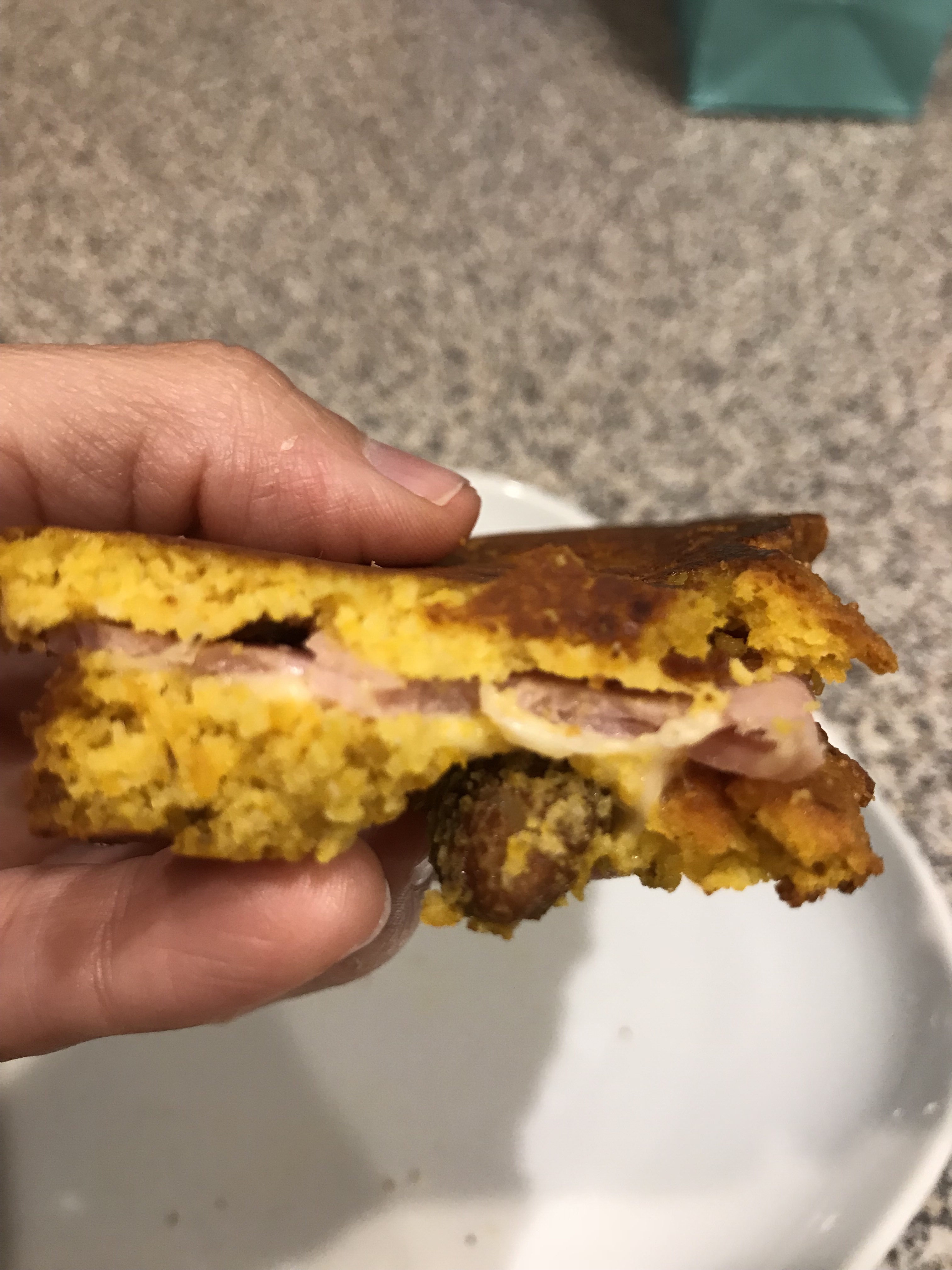 Lo rellene con jamón y queso y lo puse en la tostadora