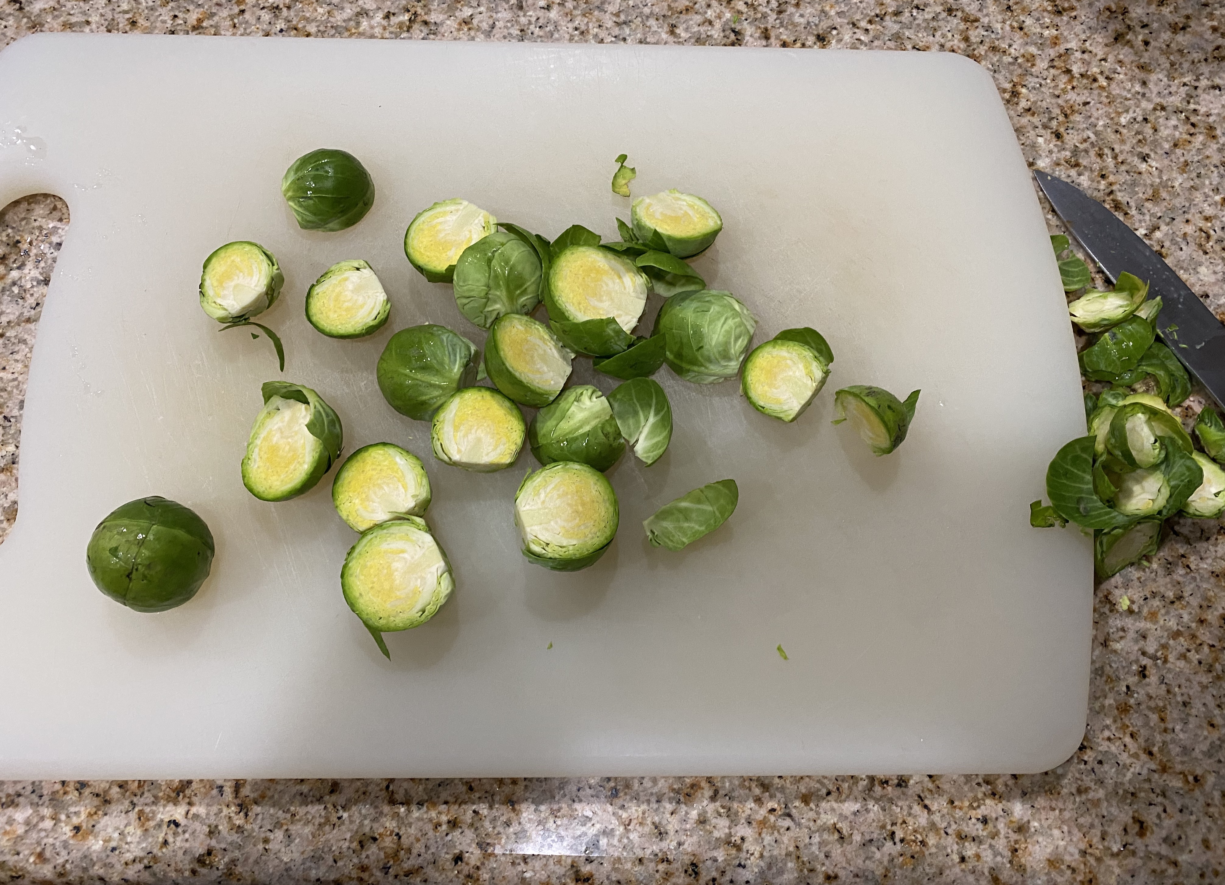 Vamos retirar la base de los coles y cortar a la mitad