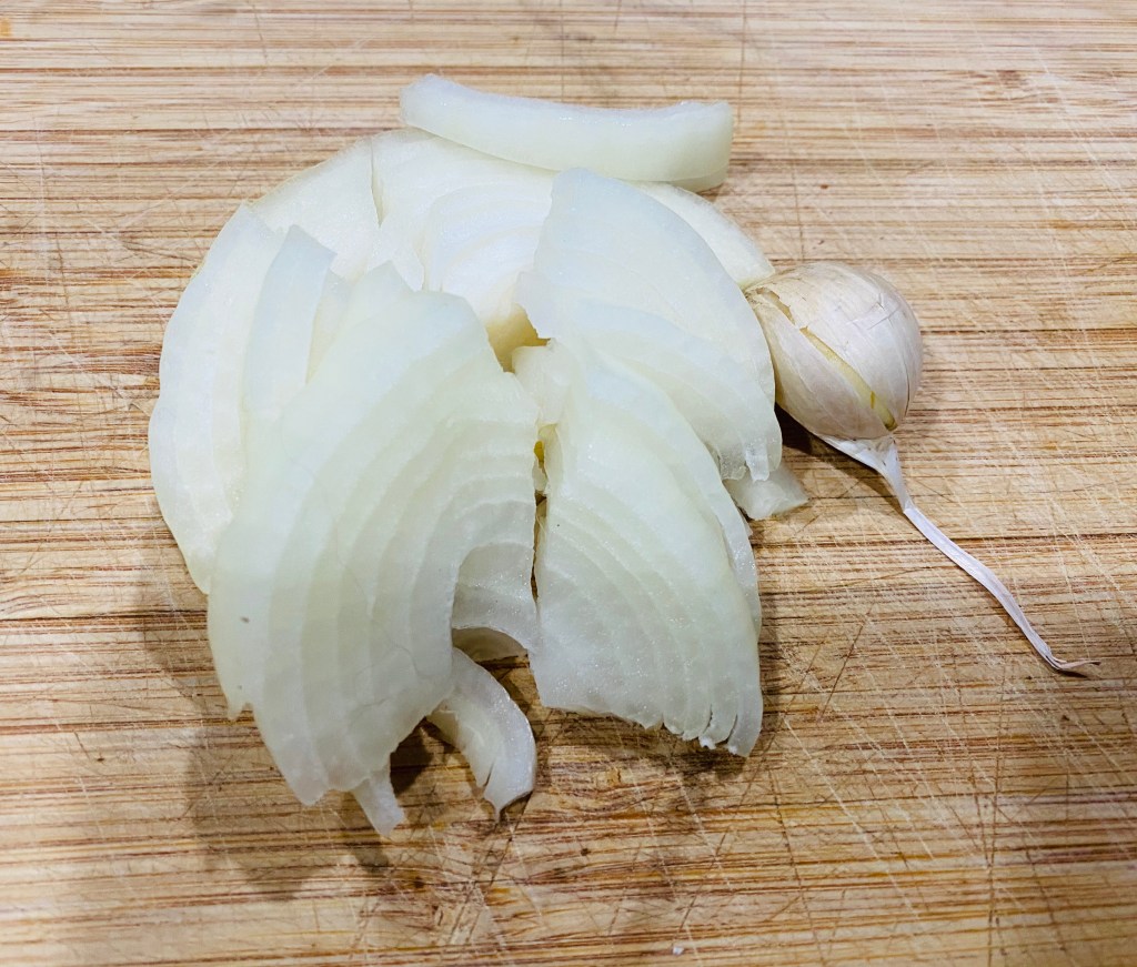 Vamos a sofrer cebolla y ajo finamente picado, como a mi me gusta lo picante la próxima vez agregare chile serrano o jalapeño