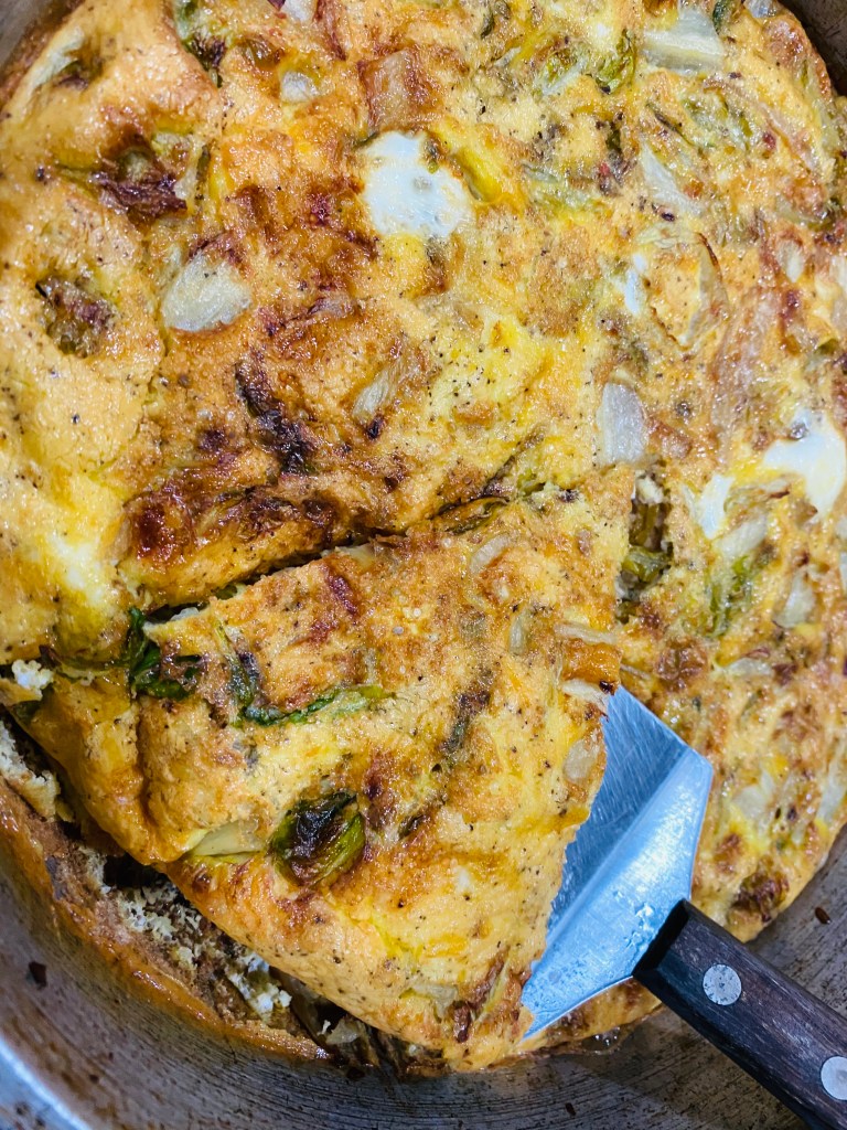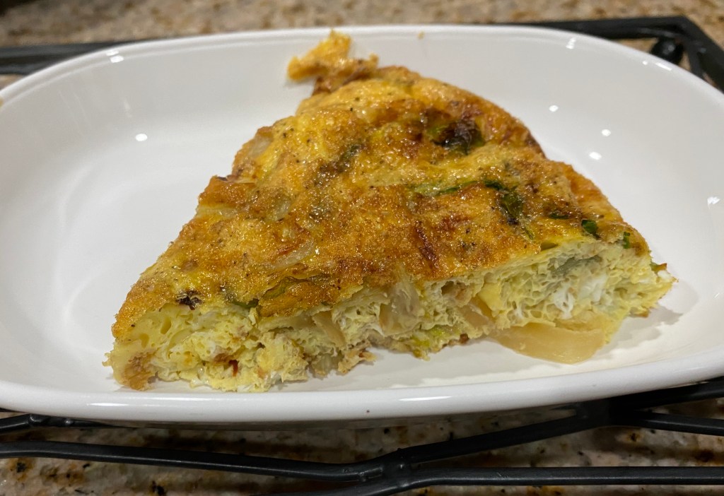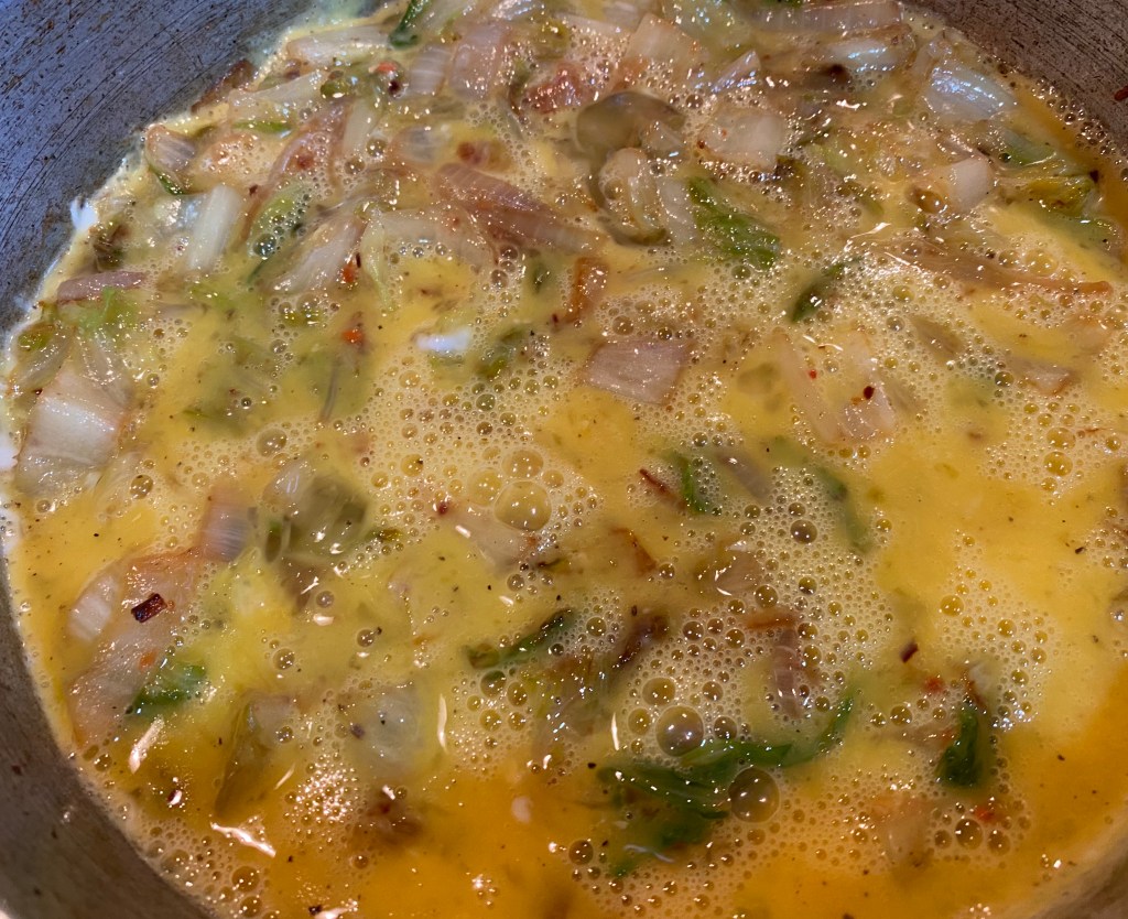 Agregas el huevo revuelto, asegúrate de distribuir los vegetales en el sartén