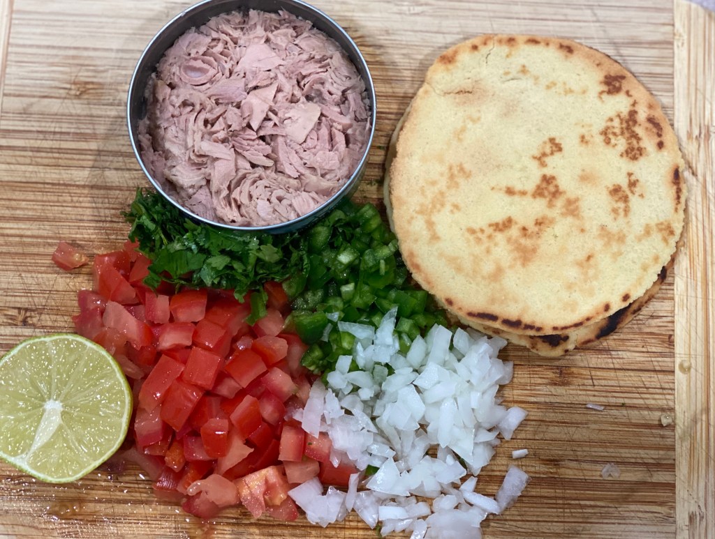Picar las verduras y mezclar con el atún, agregar limón, sal y pimienta al gusto